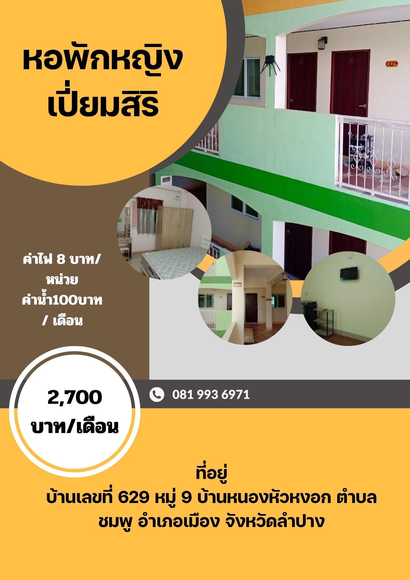BlogUncategorizedWIFI หอพักหญิง เปี่ยมสิริ By พรรษา เบนซ์ On มี.ค. 27, 2024 0 Share ค่าห้อง2,700 บาท/เดือน ค่าไฟ 8 บาท/หน่วย ค่าน้ำ100บาท / เดือน 0 Share FacebookTwitterGoogle+ReddItWhatsAppPinterestEmail