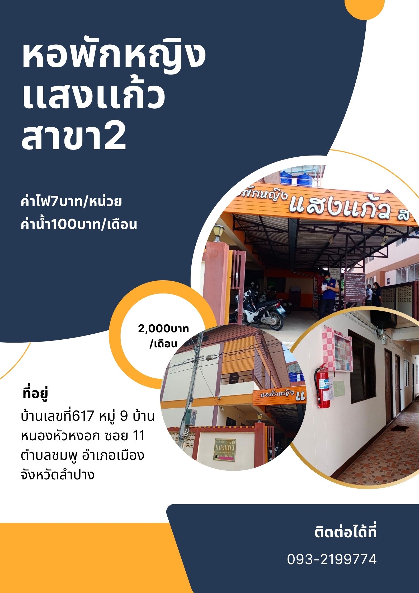 BlogUncategorizedWIFI หอพักหญิงเเสงเเก้ว สาขา2 By พรรษา เบนซ์ On มี.ค. 27, 2024 0 Share ค่าห้อง 2,000บาท/เดือน ค่าไฟ7บาท/หน่วย ค่าน้ำ100บาท/เดือน 0 Share FacebookTwitterGoogle+ReddItWhatsAppPinterestEmail